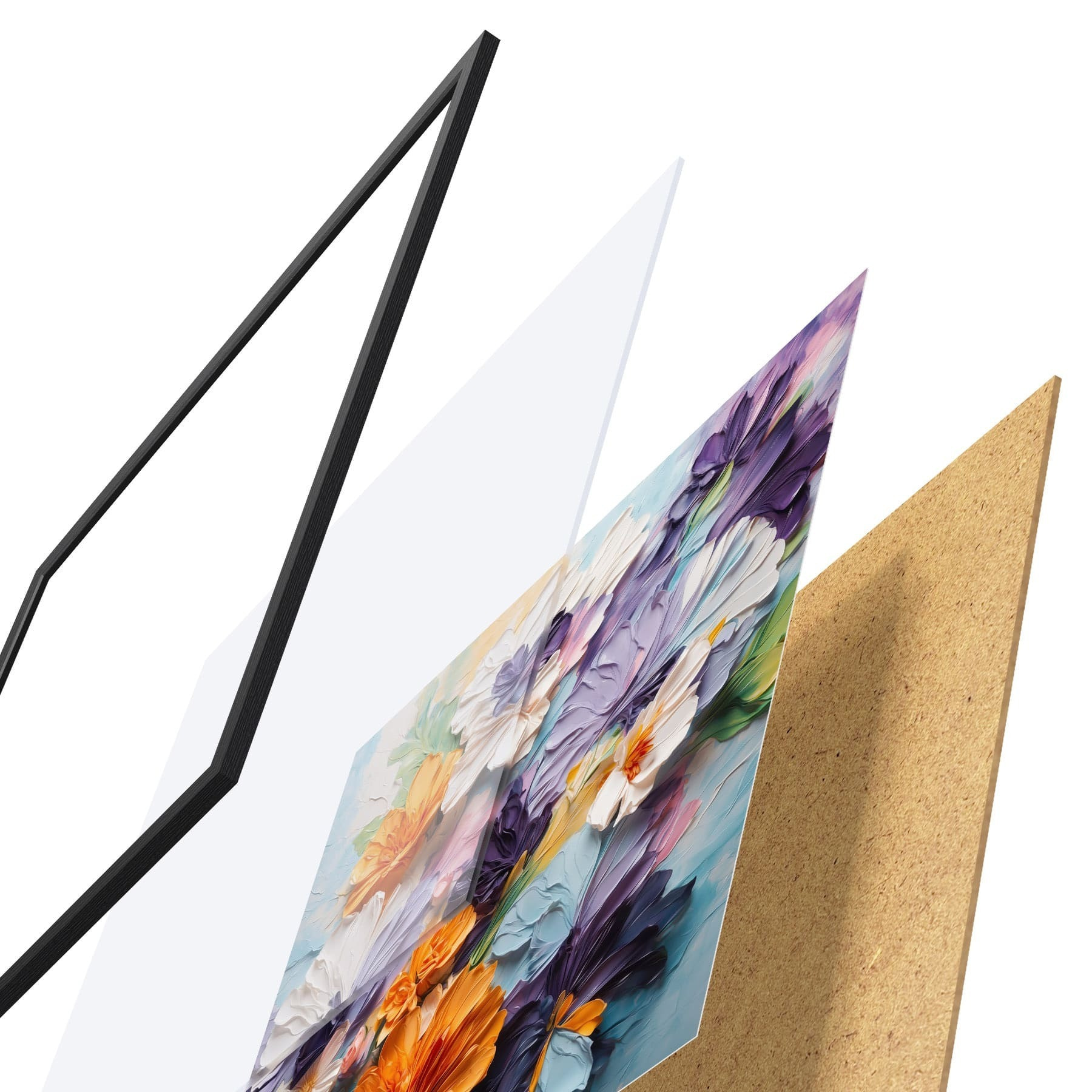 L’affiche encadrée est composée d’un cadre, d’un plexiglas, d’une image imprimée et d’un support en aggloméré. Elle est prête à être accrochée au mur grâce aux fixations situées à l’arrière.