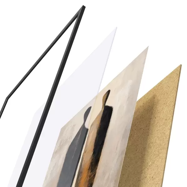 L’affiche encadrée est composée d’un cadre, d’un plexiglas, d’une image imprimée et d’un support en aggloméré. Elle est prête à être accrochée au mur grâce aux fixations situées à l’arrière.