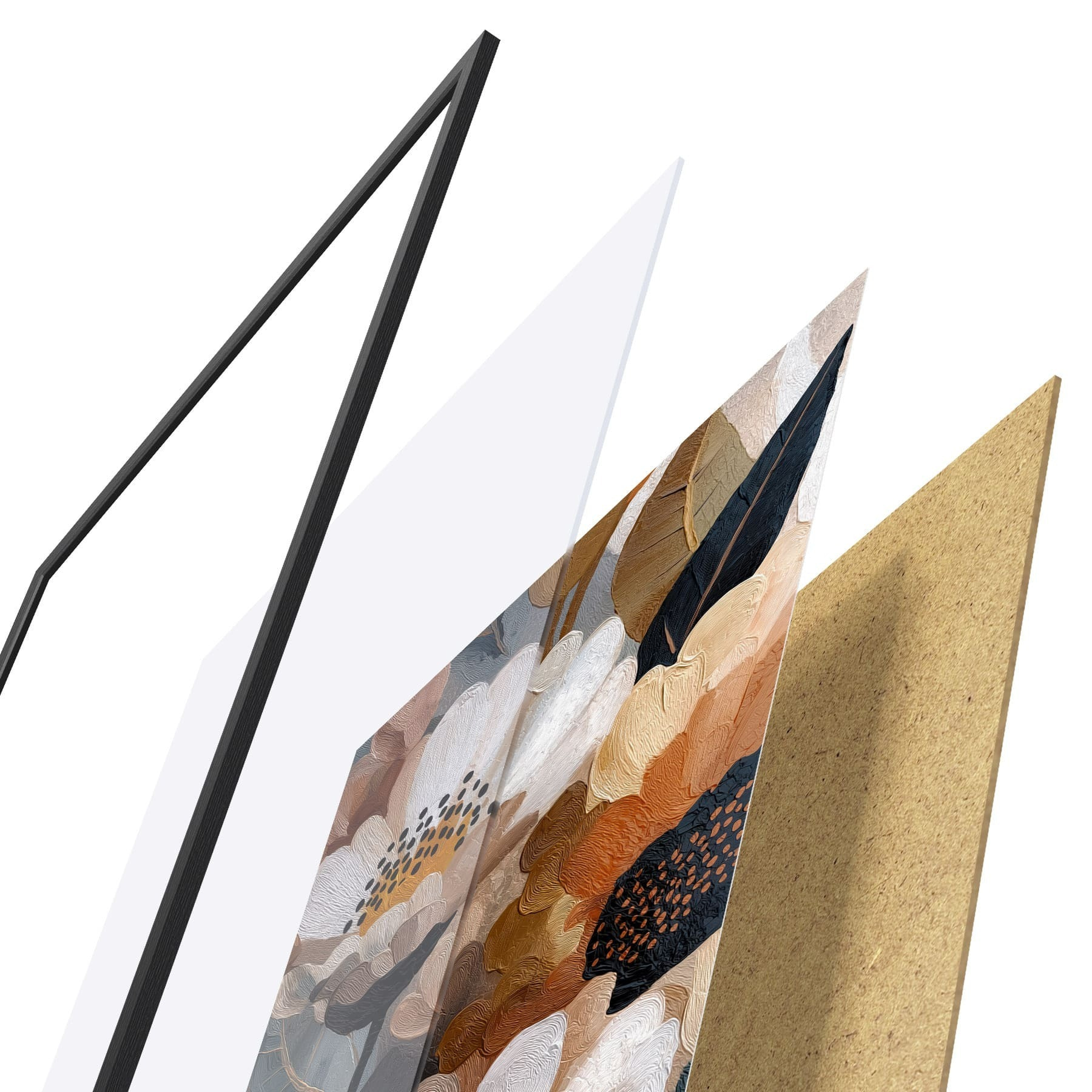L’affiche encadrée est composée d’un cadre, d’un plexiglas, d’une image imprimée et d’un support en aggloméré. Elle est prête à être accrochée au mur grâce aux fixations situées à l’arrière.