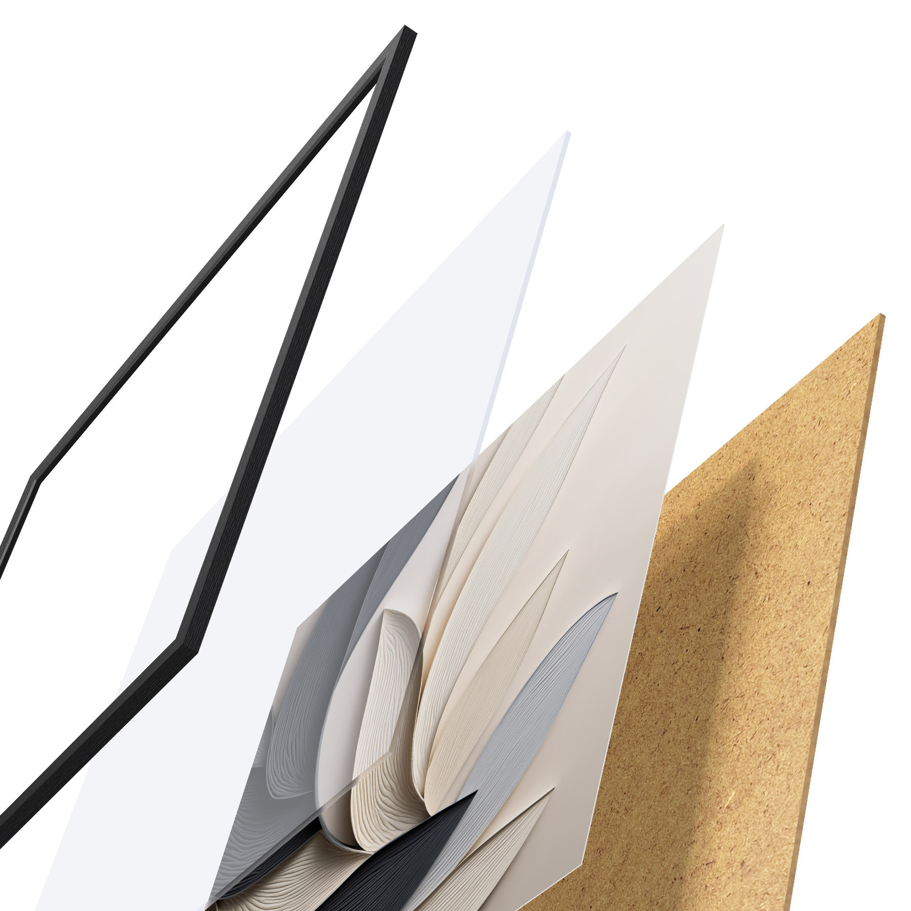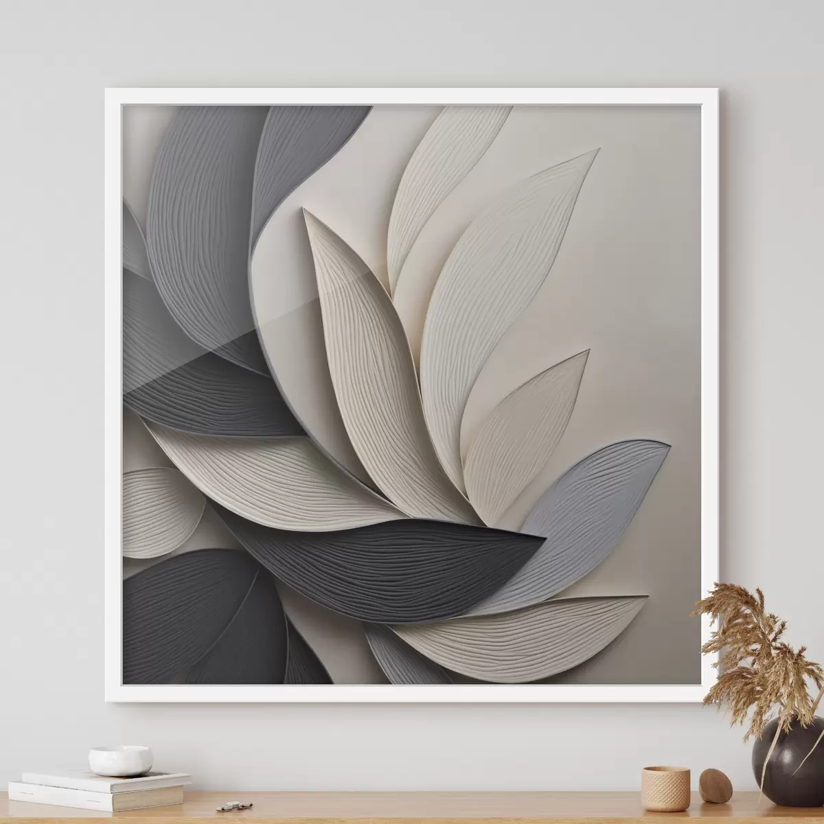 Poster Composition abstraite de feuilles superposées, de formes courbes en noir, blanc et beige, œuvre d'art texturée Nr f48381
