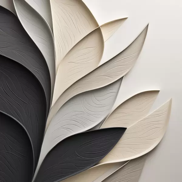 Poster Composition abstraite de feuilles superposées, de formes courbes en noir, blanc et beige, œuvre d'art texturée f48382