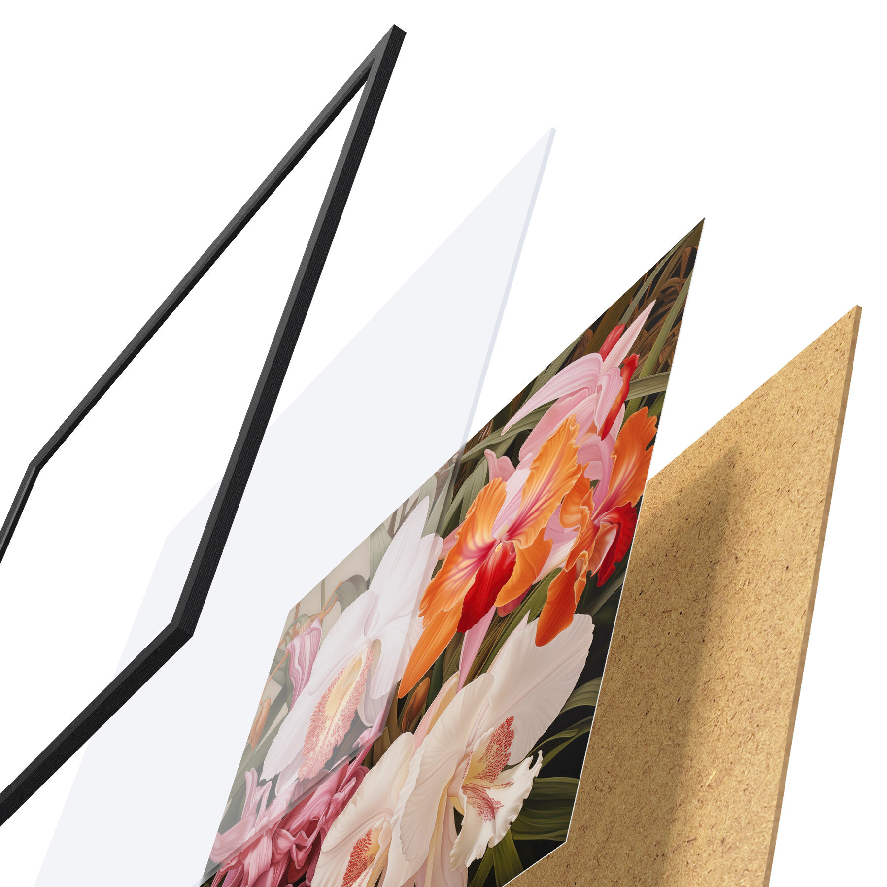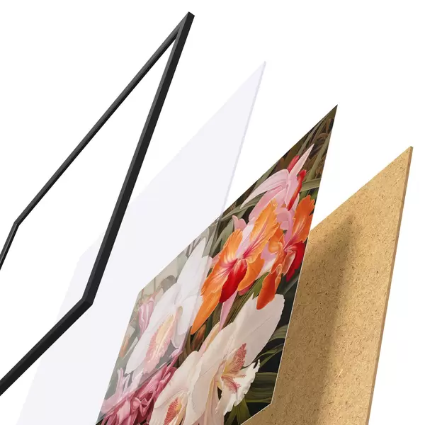 L’affiche encadrée est composée d’un cadre, d’un plexiglas, d’une image imprimée et d’un support en aggloméré. Elle est prête à être accrochée au mur grâce aux fixations situées à l’arrière.