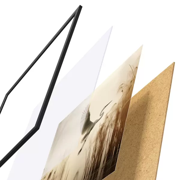 L’affiche encadrée est composée d’un cadre, d’un plexiglas, d’une image imprimée et d’un support en aggloméré. Elle est prête à être accrochée au mur grâce aux fixations situées à l’arrière.