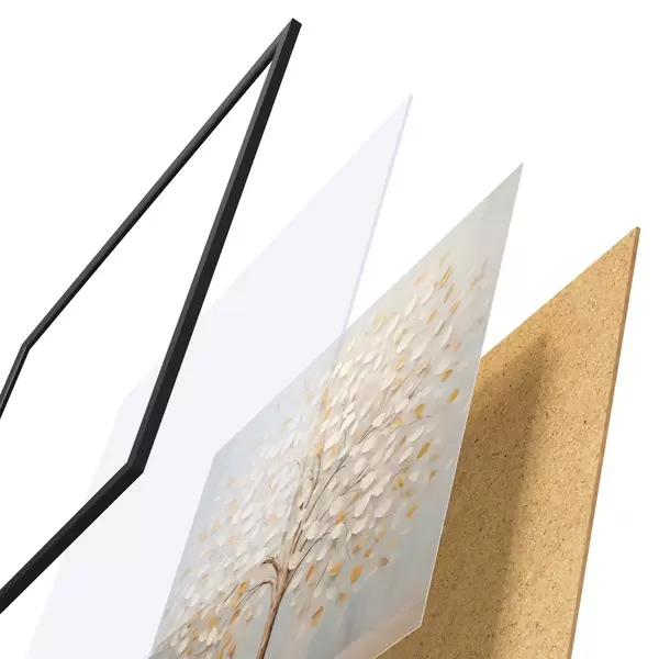 L’affiche encadrée est composée d’un cadre, d’un plexiglas, d’une image imprimée et d’un support en aggloméré. Elle est prête à être accrochée au mur grâce aux fixations situées à l’arrière.