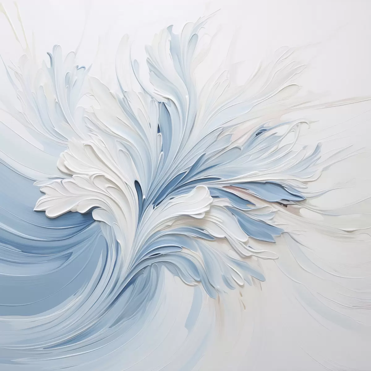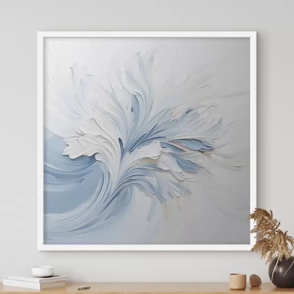 Poster Un motif floral abstrait blanc et bleu clair, composé de pétales texturés et de lignes sinueuses f48395