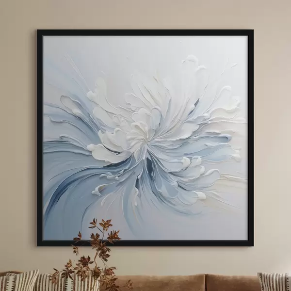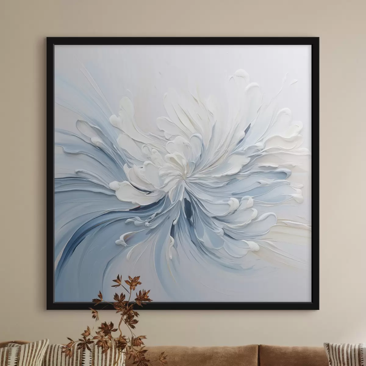 Poster Un motif floral abstrait blanc et bleu clair, composé de pétales texturés et de lignes sinueuses Nr f48396