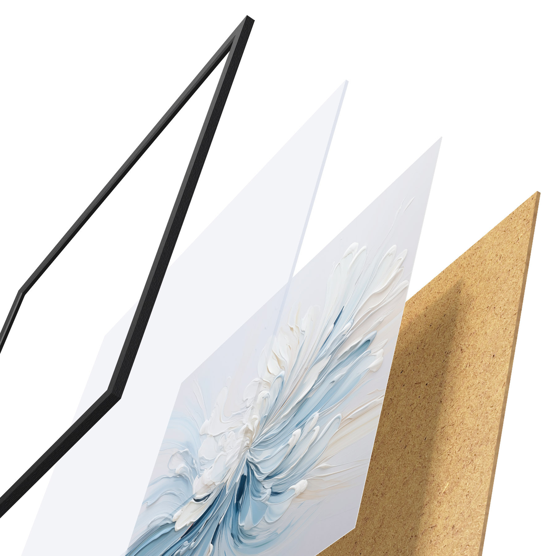 L’affiche encadrée est composée d’un cadre, d’un plexiglas, d’une image imprimée et d’un support en aggloméré. Elle est prête à être accrochée au mur grâce aux fixations situées à l’arrière.