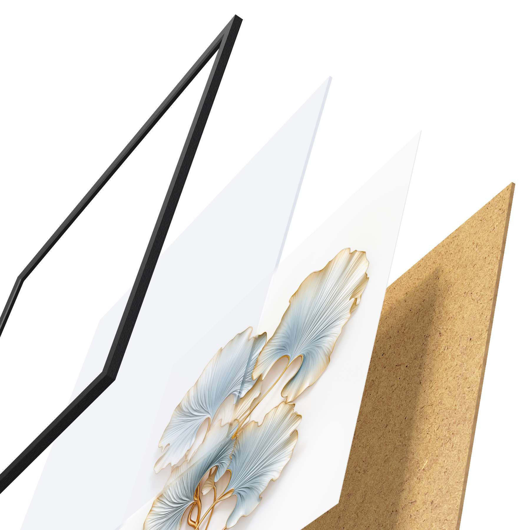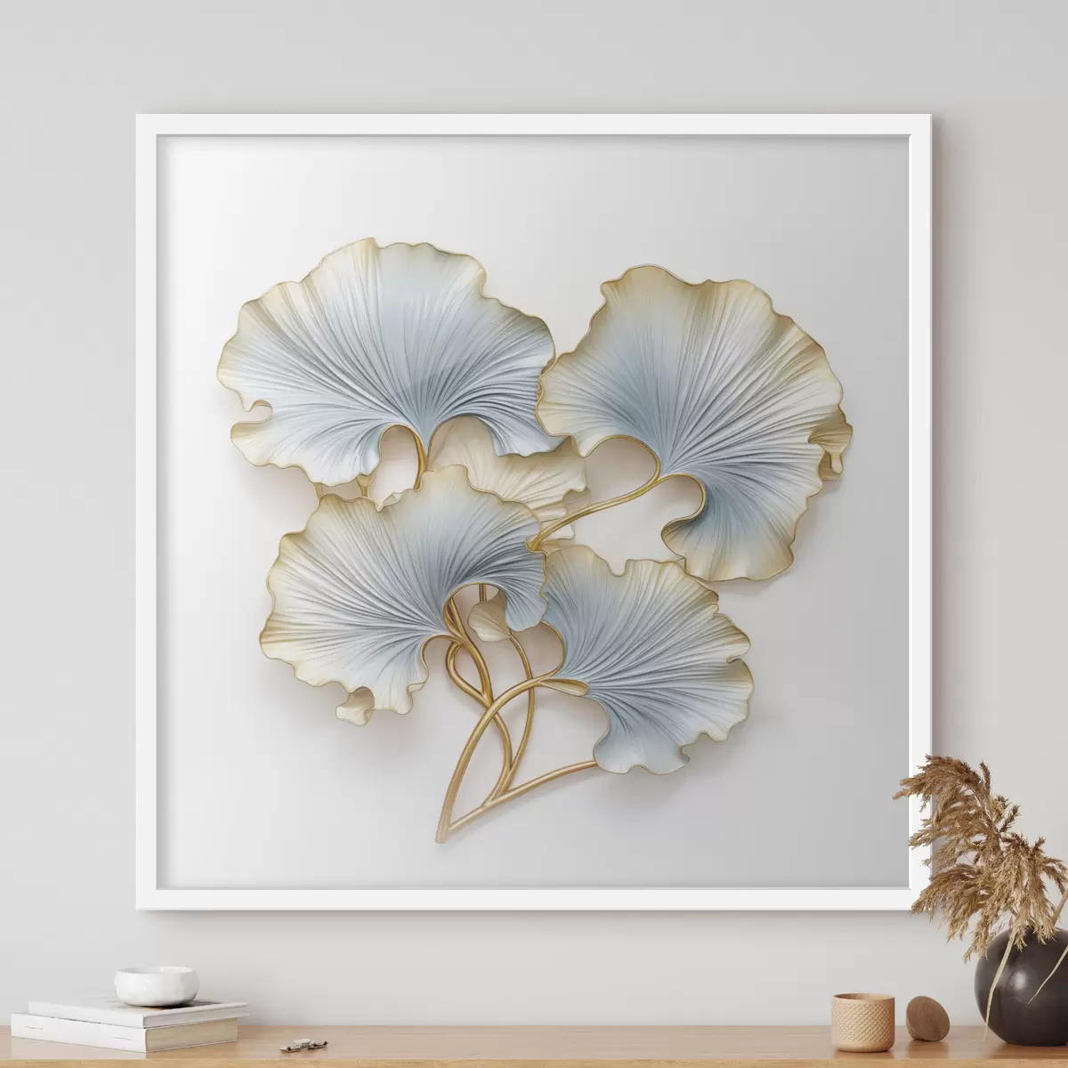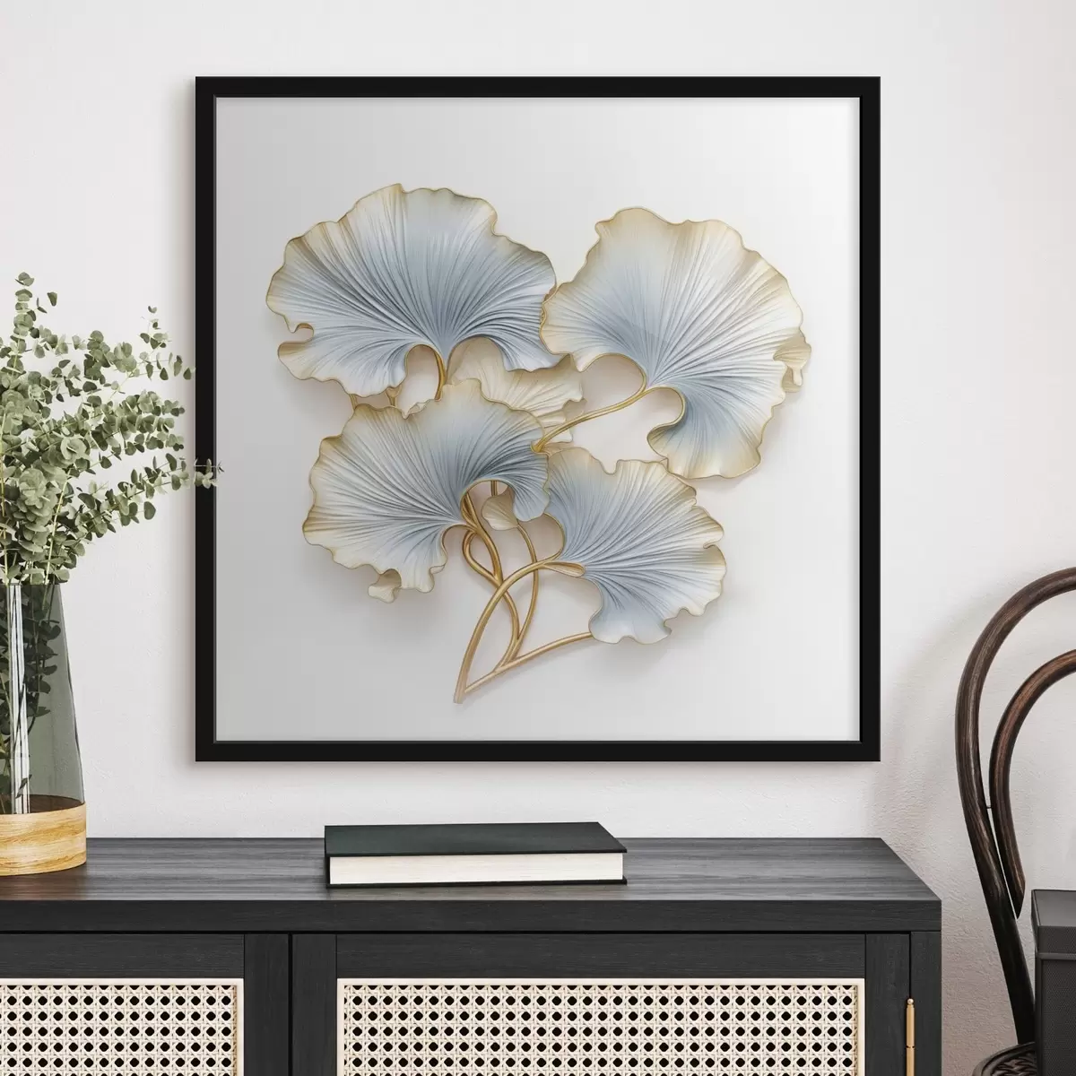 Poster Feuilles de ginkgo stylisées rehaussées de touches de bleu et de jaune Nr f48397