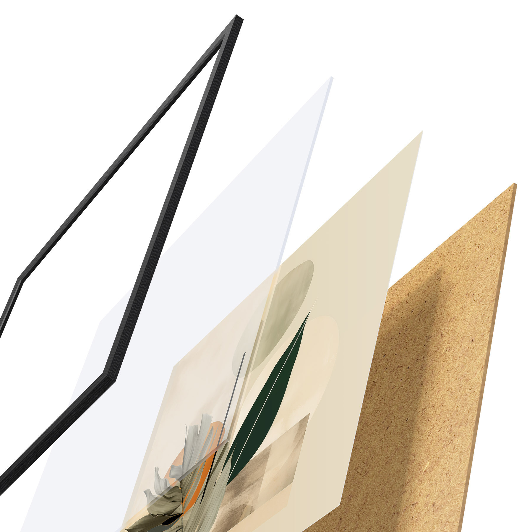L’affiche encadrée est composée d’un cadre, d’un plexiglas, d’une image imprimée et d’un support en aggloméré. Elle est prête à être accrochée au mur grâce aux fixations situées à l’arrière.