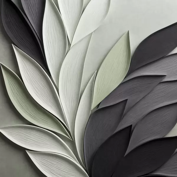 Poster Feuilles stylisées et abstraites dans des tons de gris, de blanc et de vert discret Nr f48411
