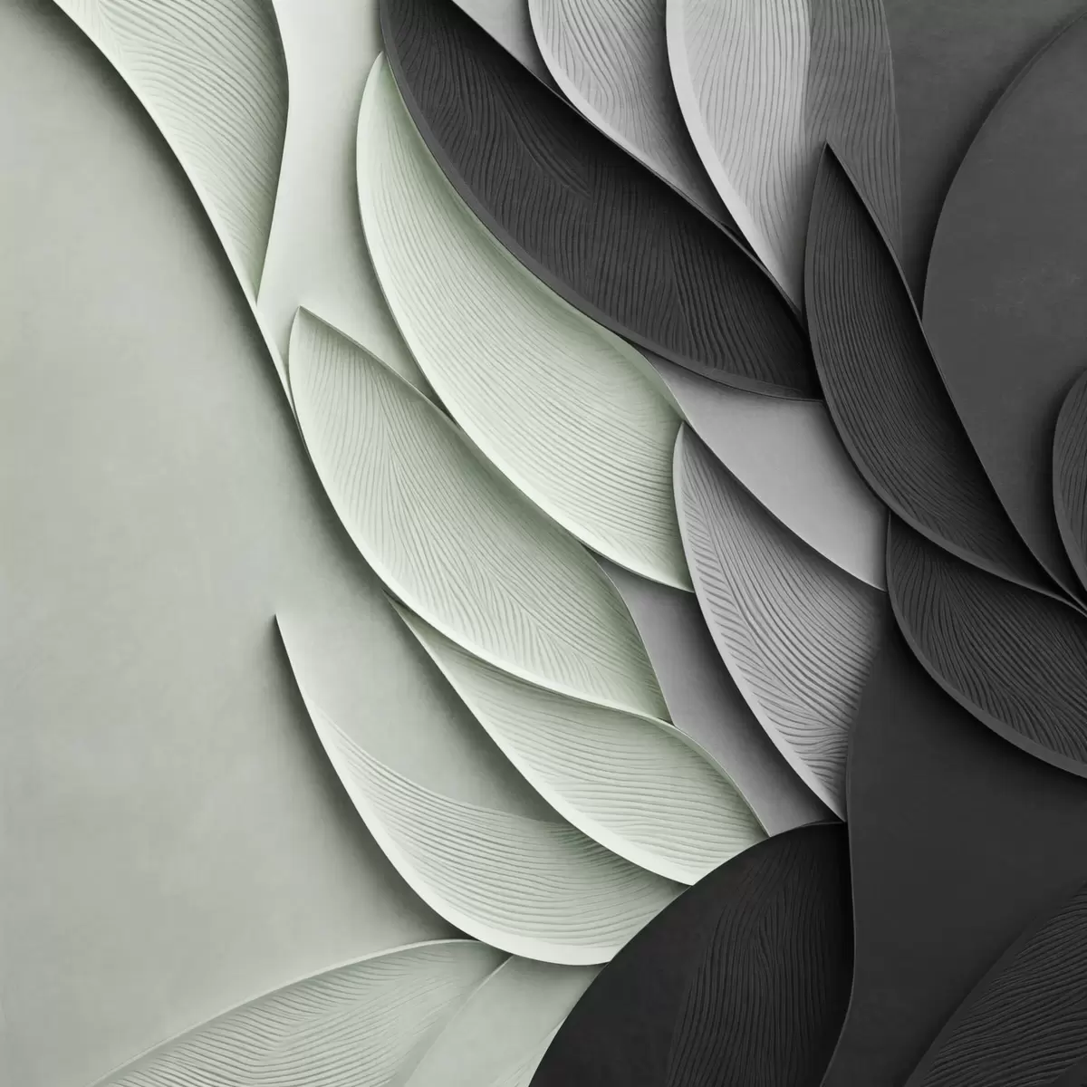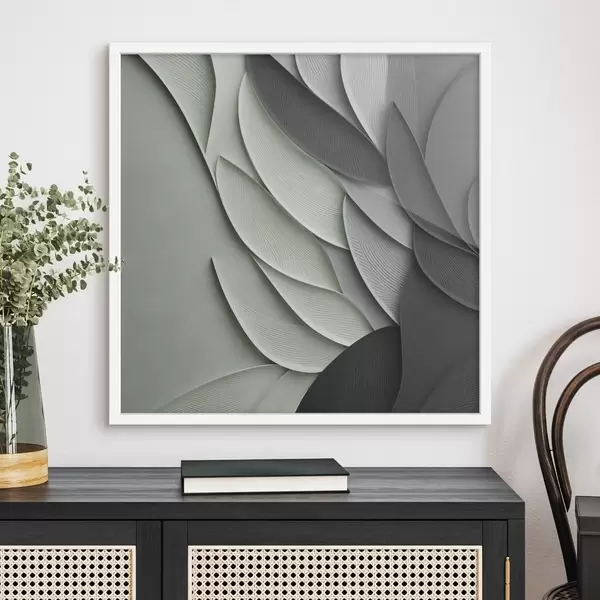 Poster Feuilles stylisées et abstraites dans des tons de gris, de blanc et de vert discret Nr f48412