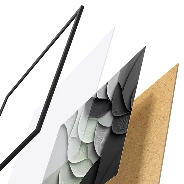 L’affiche encadrée est composée d’un cadre, d’un plexiglas, d’une image imprimée et d’un support en aggloméré. Elle est prête à être accrochée au mur grâce aux fixations situées à l’arrière.