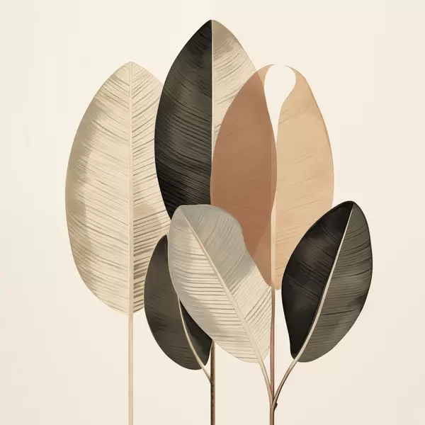Poster De grandes plantes aux feuilles ovales, dans des tons sobres, ornées de motifs rectangulaires abstraits Nr f48414