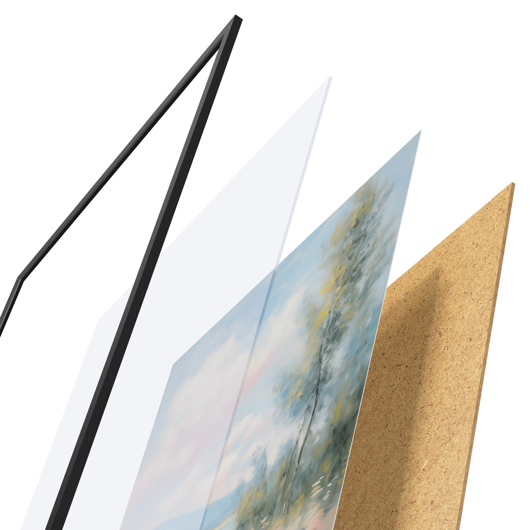 L’affiche encadrée est composée d’un cadre, d’un plexiglas, d’une image imprimée et d’un support en aggloméré. Elle est prête à être accrochée au mur grâce aux fixations situées à l’arrière.