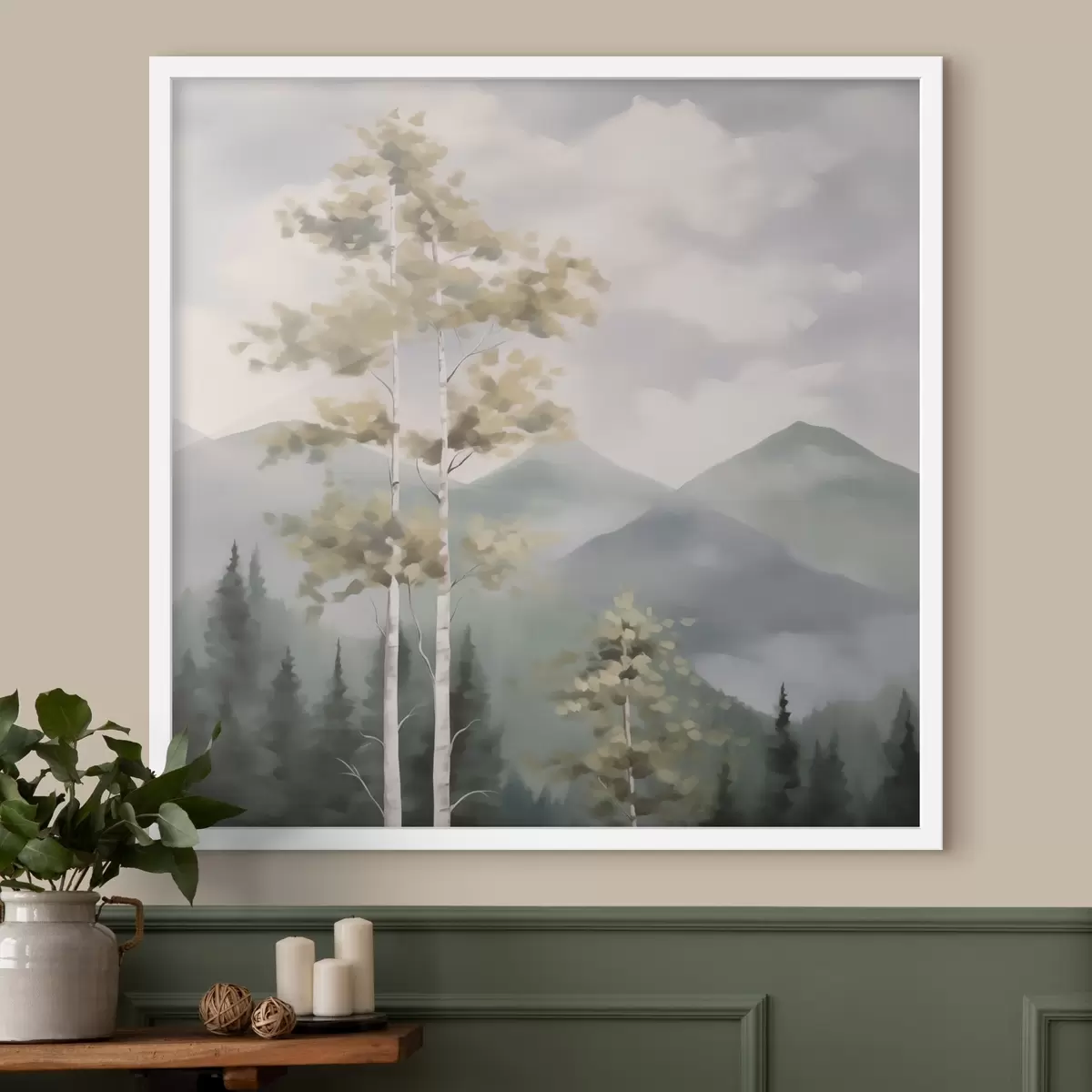 Poster Des arbres avec les montagnes en arrière-plan, imitation d'une peinture Nr f48421