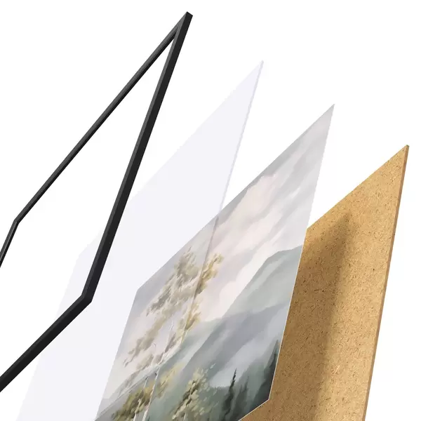 L’affiche encadrée est composée d’un cadre, d’un plexiglas, d’une image imprimée et d’un support en aggloméré. Elle est prête à être accrochée au mur grâce aux fixations situées à l’arrière.