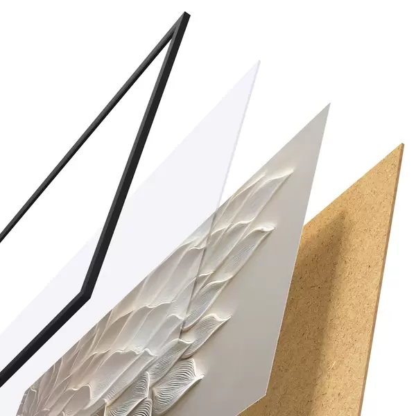 L’affiche encadrée est composée d’un cadre, d’un plexiglas, d’une image imprimée et d’un support en aggloméré. Elle est prête à être accrochée au mur grâce aux fixations situées à l’arrière.