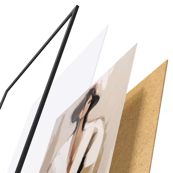 L’affiche encadrée est composée d’un cadre, d’un plexiglas, d’une image imprimée et d’un support en aggloméré. Elle est prête à être accrochée au mur grâce aux fixations situées à l’arrière.