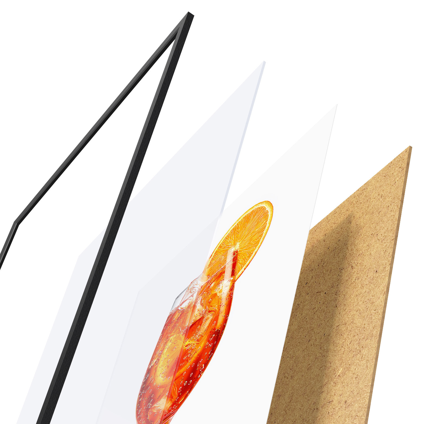 L’affiche encadrée est composée d’un cadre, d’un plexiglas, d’une image imprimée et d’un support en aggloméré. Elle est prête à être accrochée au mur grâce aux fixations situées à l’arrière.