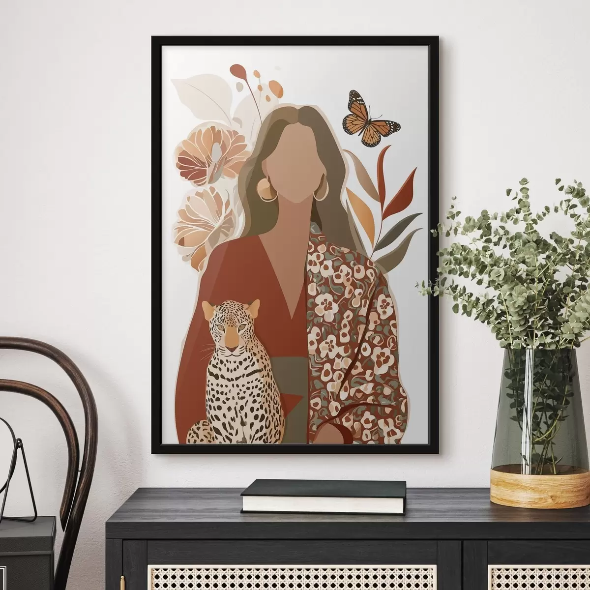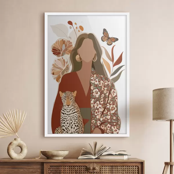 Poster Femme sur fond floral f48435