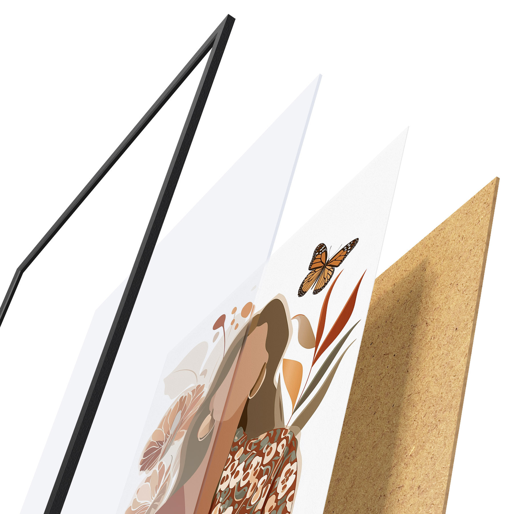 L’affiche encadrée est composée d’un cadre, d’un plexiglas, d’une image imprimée et d’un support en aggloméré. Elle est prête à être accrochée au mur grâce aux fixations situées à l’arrière.