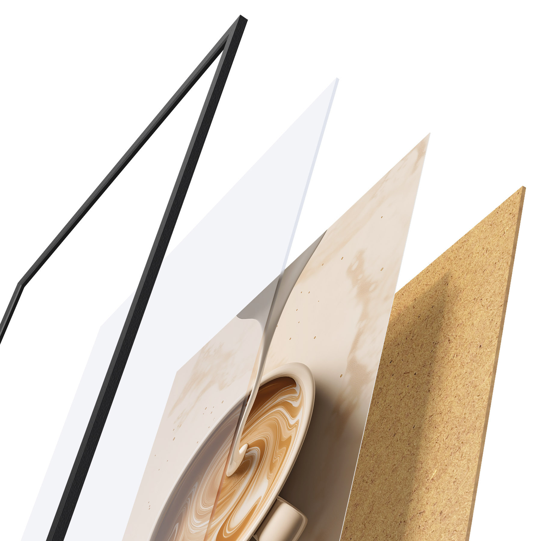 L’affiche encadrée est composée d’un cadre, d’un plexiglas, d’une image imprimée et d’un support en aggloméré. Elle est prête à être accrochée au mur grâce aux fixations situées à l’arrière.