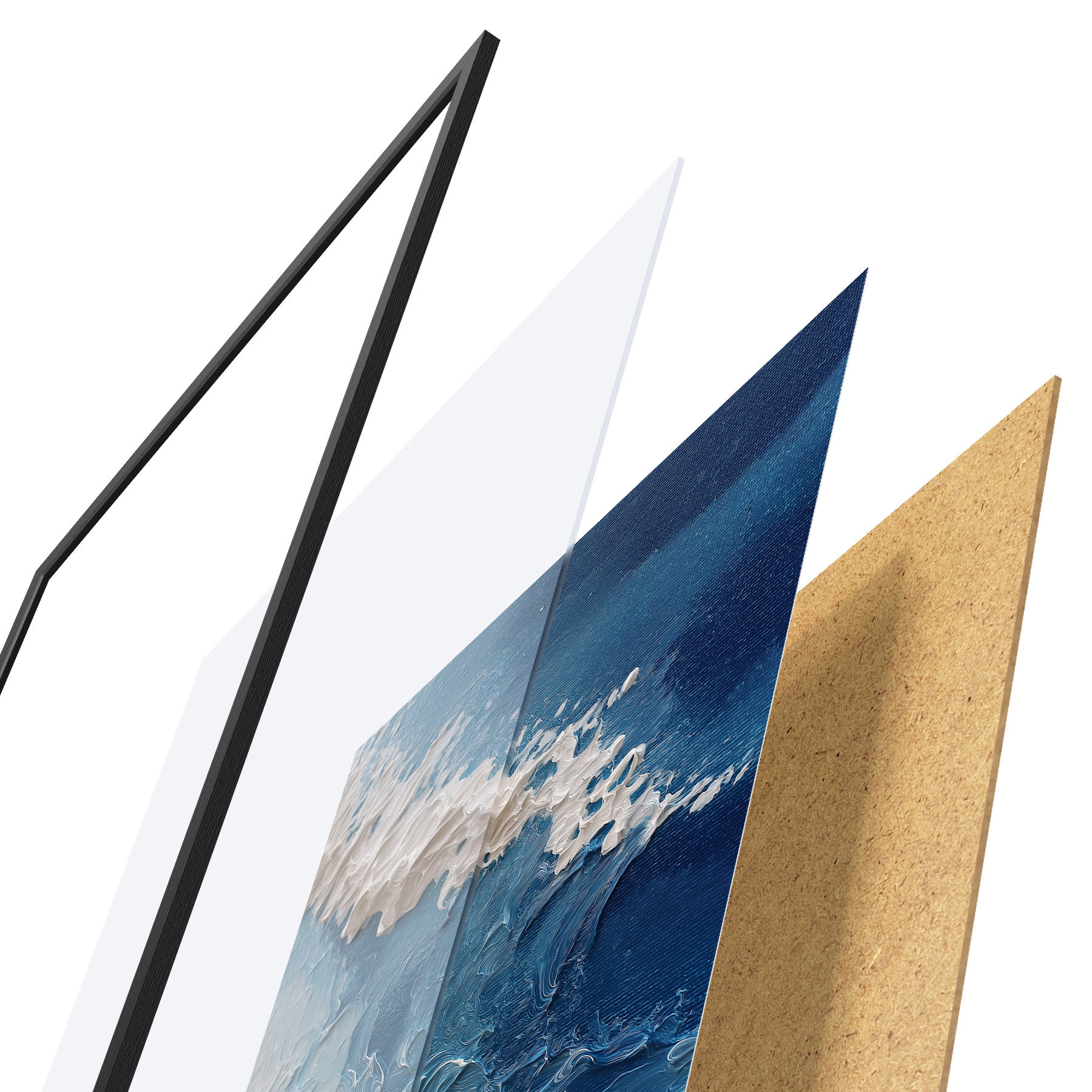 L’affiche encadrée est composée d’un cadre, d’un plexiglas, d’une image imprimée et d’un support en aggloméré. Elle est prête à être accrochée au mur grâce aux fixations situées à l’arrière.