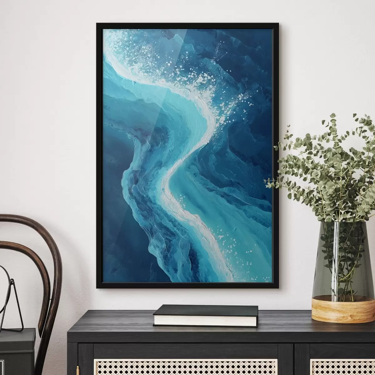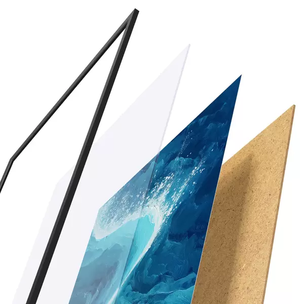 L’affiche encadrée est composée d’un cadre, d’un plexiglas, d’une image imprimée et d’un support en aggloméré. Elle est prête à être accrochée au mur grâce aux fixations situées à l’arrière.