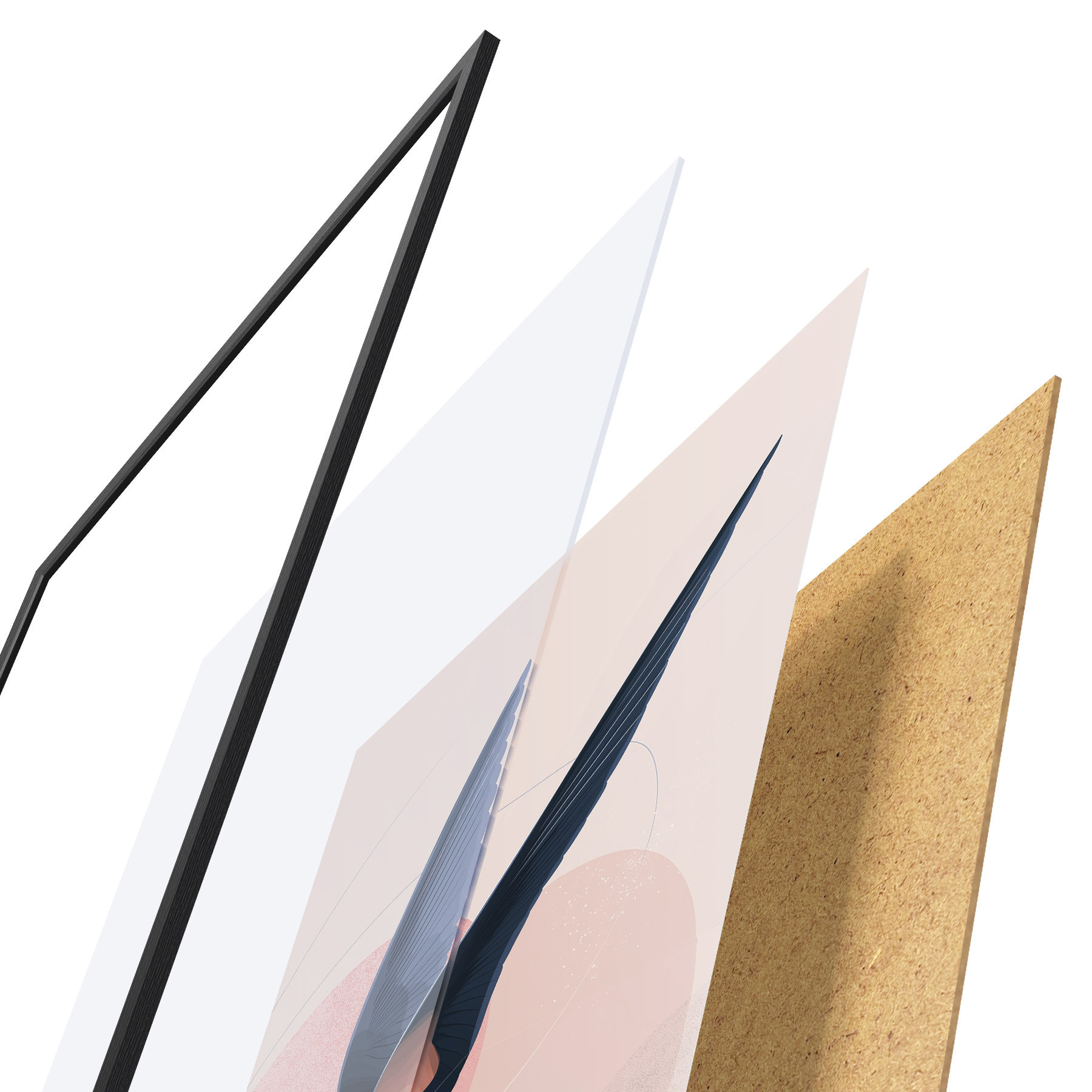 L’affiche encadrée est composée d’un cadre, d’un plexiglas, d’une image imprimée et d’un support en aggloméré. Elle est prête à être accrochée au mur grâce aux fixations situées à l’arrière.