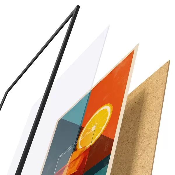 L’affiche encadrée est composée d’un cadre, d’un plexiglas, d’une image imprimée et d’un support en aggloméré. Elle est prête à être accrochée au mur grâce aux fixations situées à l’arrière.