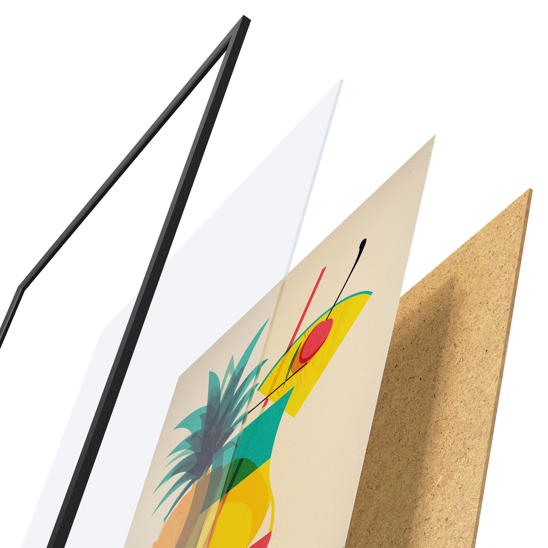 L’affiche encadrée est composée d’un cadre, d’un plexiglas, d’une image imprimée et d’un support en aggloméré. Elle est prête à être accrochée au mur grâce aux fixations situées à l’arrière.