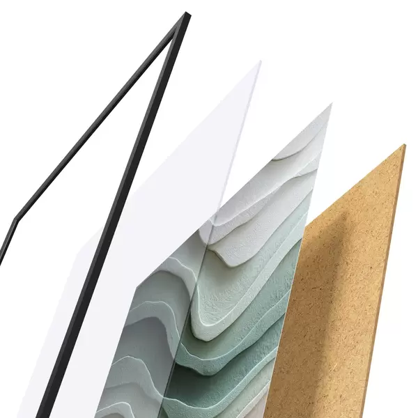 L’affiche encadrée est composée d’un cadre, d’un plexiglas, d’une image imprimée et d’un support en aggloméré. Elle est prête à être accrochée au mur grâce aux fixations situées à l’arrière.