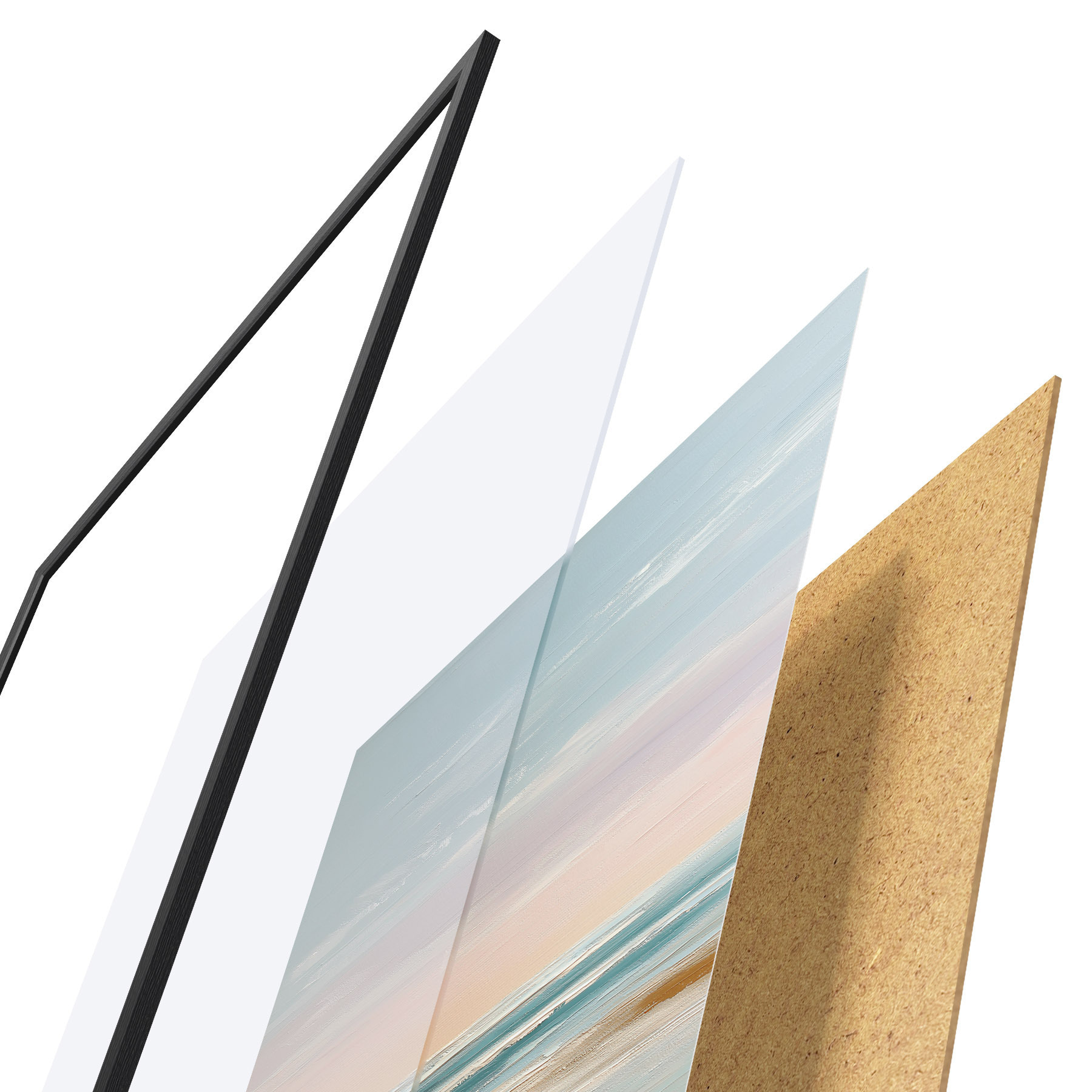 L’affiche encadrée est composée d’un cadre, d’un plexiglas, d’une image imprimée et d’un support en aggloméré. Elle est prête à être accrochée au mur grâce aux fixations situées à l’arrière.