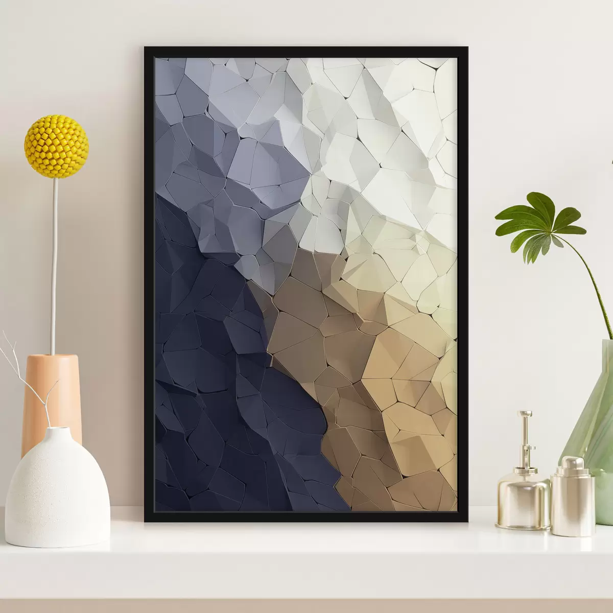 Poster Abstraction géométrique dans des tons beige et graphite, œuvre d'art moderne texturée Nr f48478