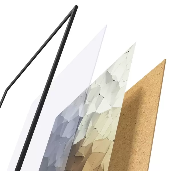 L’affiche encadrée est composée d’un cadre, d’un plexiglas, d’une image imprimée et d’un support en aggloméré. Elle est prête à être accrochée au mur grâce aux fixations situées à l’arrière.