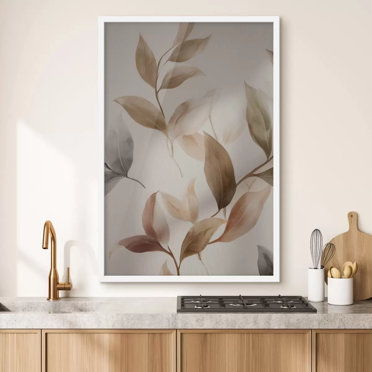 Poster Peinture à base de feuilles, branches beiges, minimalisme, style scandinave Nr f48479