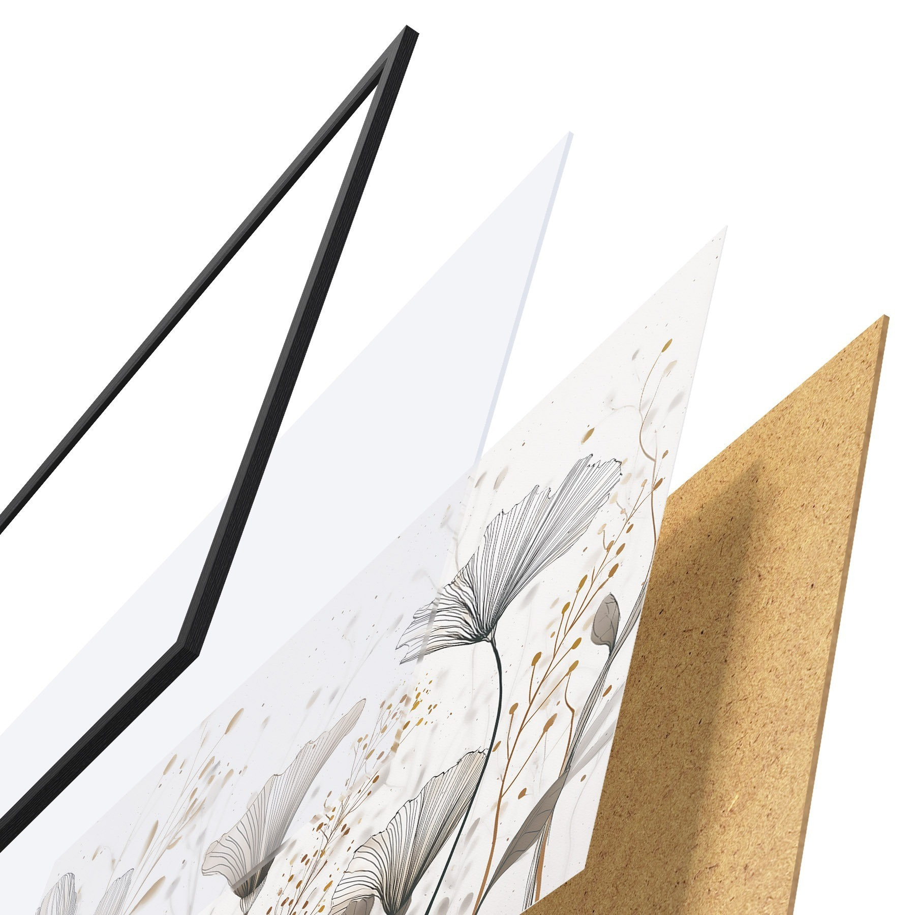 L’affiche encadrée est composée d’un cadre, d’un plexiglas, d’une image imprimée et d’un support en aggloméré. Elle est prête à être accrochée au mur grâce aux fixations situées à l’arrière.