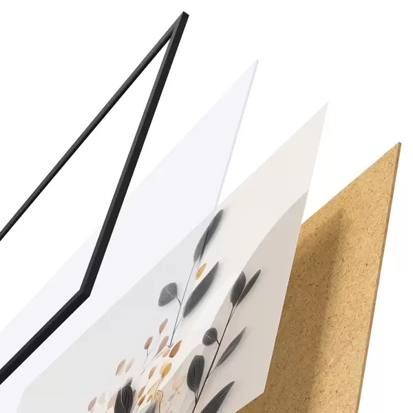 L’affiche encadrée est composée d’un cadre, d’un plexiglas, d’une image imprimée et d’un support en aggloméré. Elle est prête à être accrochée au mur grâce aux fixations situées à l’arrière.