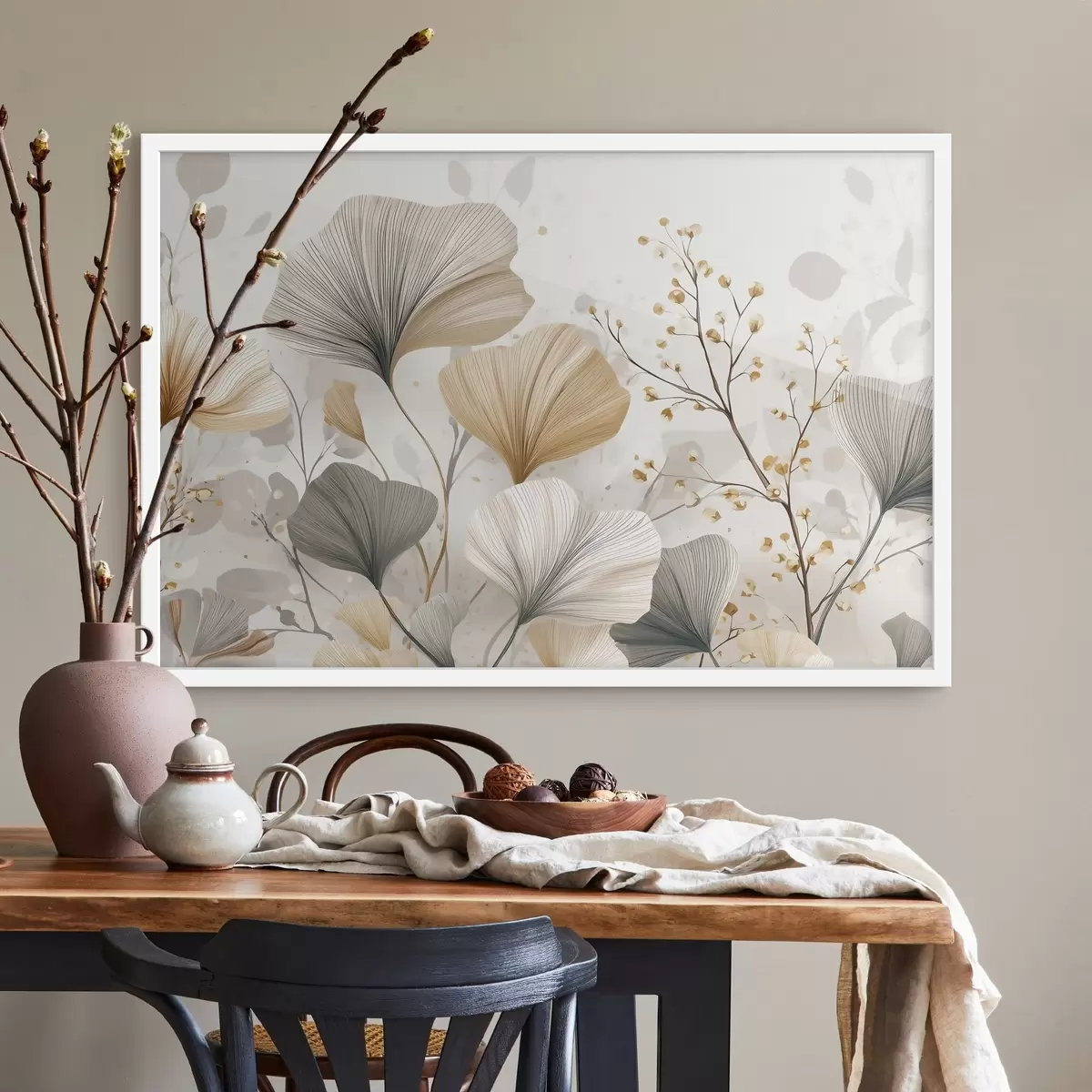 Poster Fleurs délicates couleur ivoire f48486