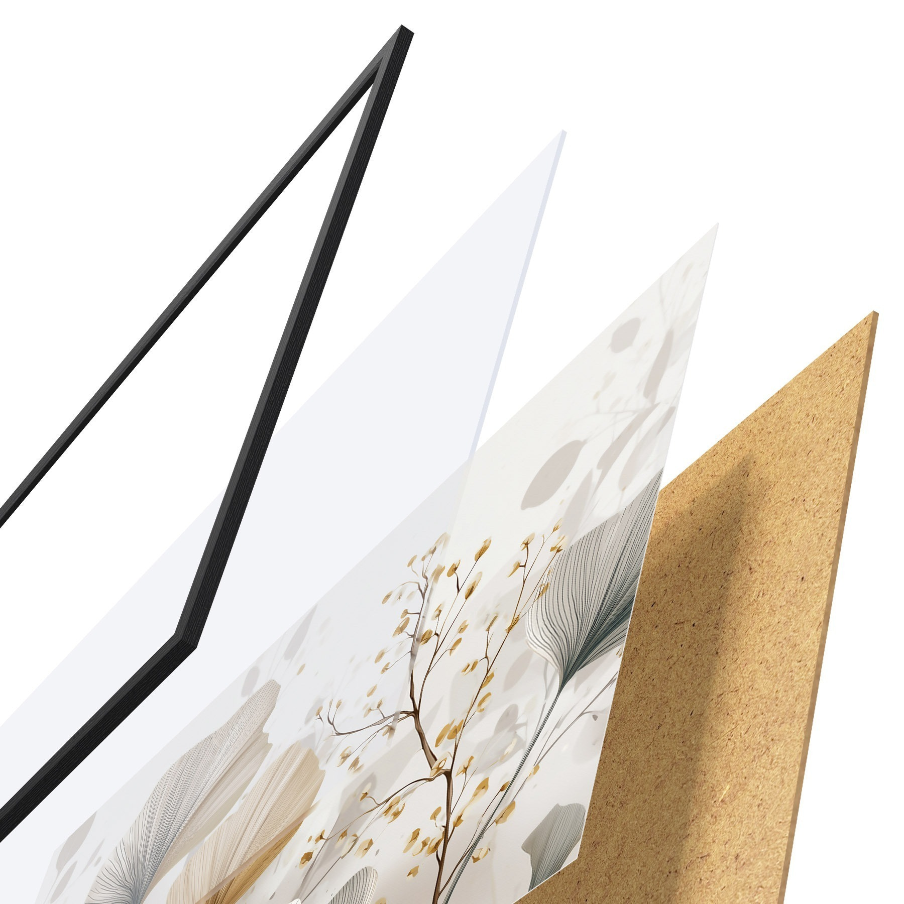 L’affiche encadrée est composée d’un cadre, d’un plexiglas, d’une image imprimée et d’un support en aggloméré. Elle est prête à être accrochée au mur grâce aux fixations situées à l’arrière.