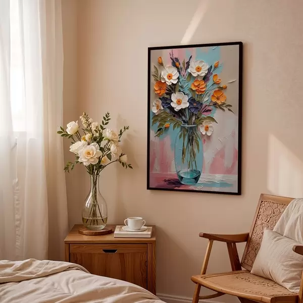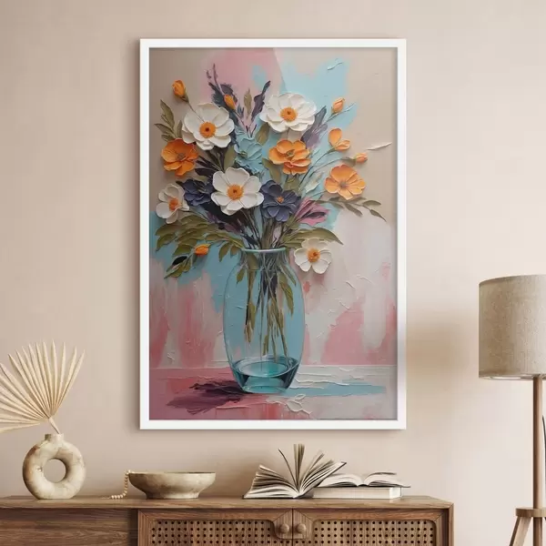 Poster Bouquet de fleurs dans un vase en verre sur fond coloré Nr f48488