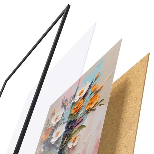L’affiche encadrée est composée d’un cadre, d’un plexiglas, d’une image imprimée et d’un support en aggloméré. Elle est prête à être accrochée au mur grâce aux fixations situées à l’arrière.
