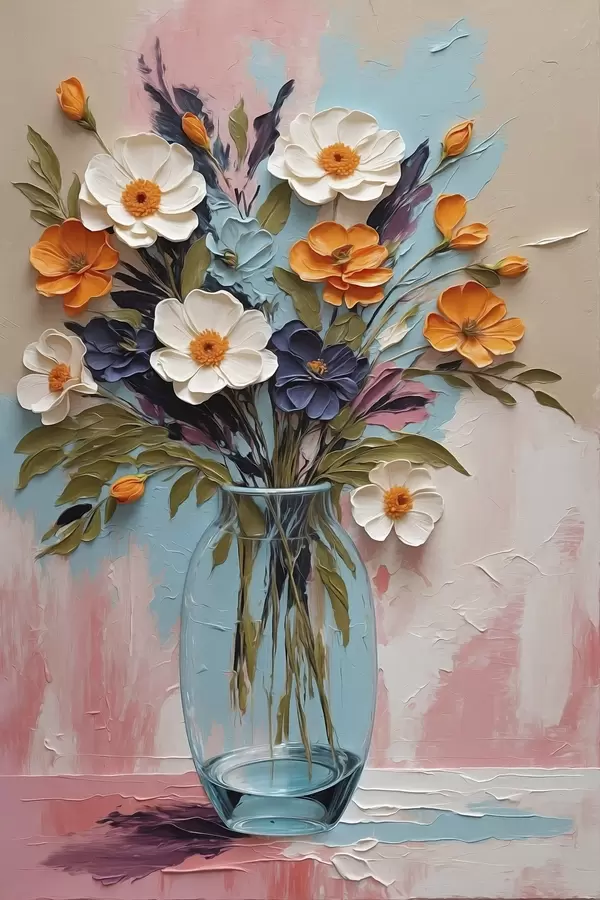 Poster Bouquet de fleurs dans un vase en verre sur fond coloré f48488