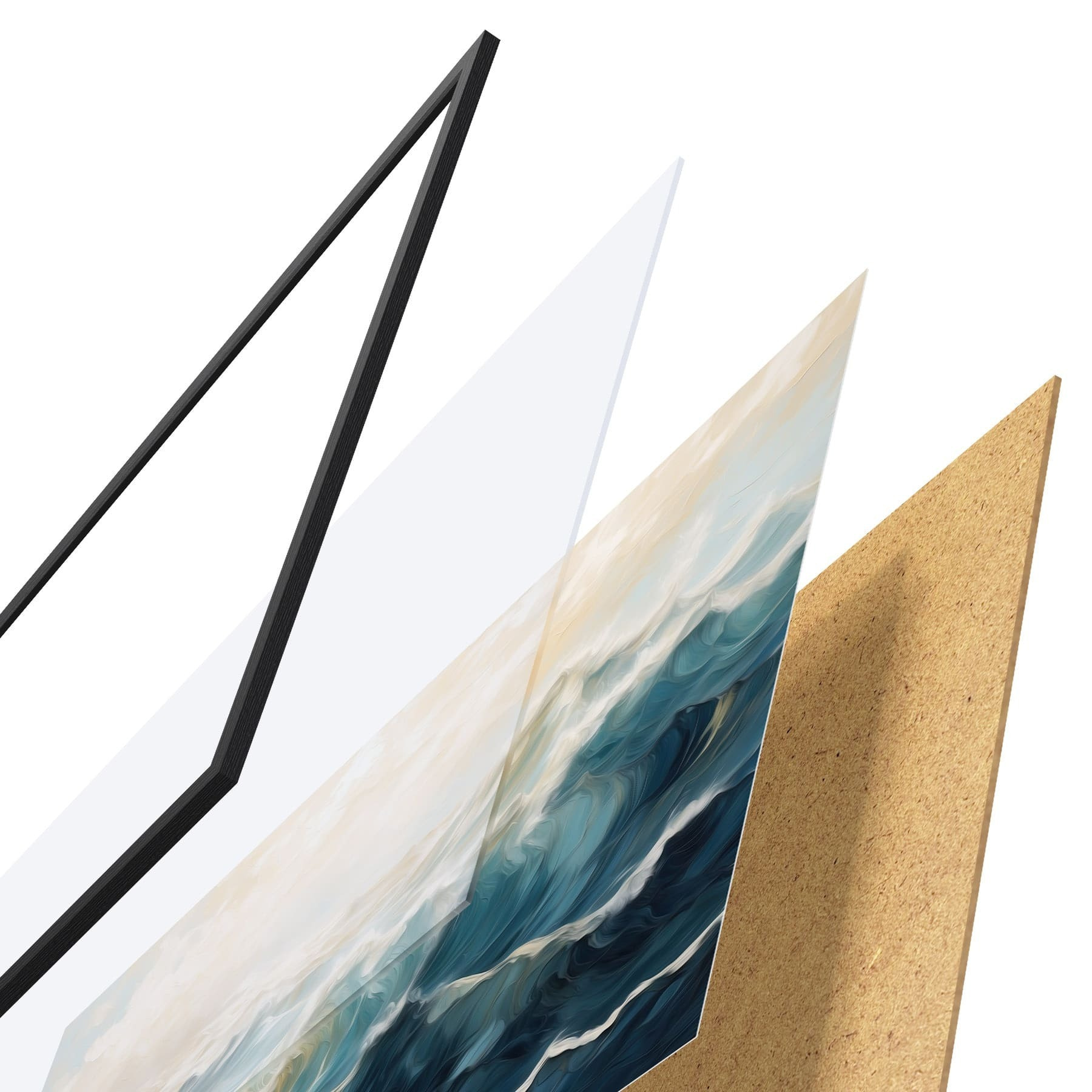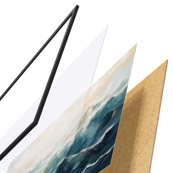 L’affiche encadrée est composée d’un cadre, d’un plexiglas, d’une image imprimée et d’un support en aggloméré. Elle est prête à être accrochée au mur grâce aux fixations situées à l’arrière.