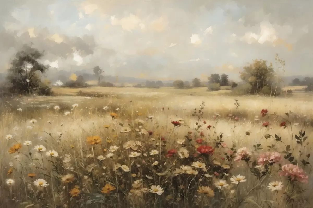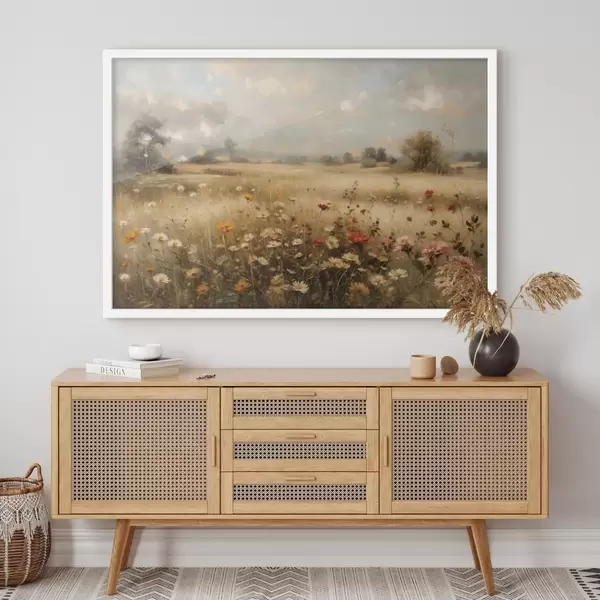 Poster Champ de fleurs sauvages baigné d'une douce lumière f48491