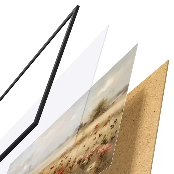 L’affiche encadrée est composée d’un cadre, d’un plexiglas, d’une image imprimée et d’un support en aggloméré. Elle est prête à être accrochée au mur grâce aux fixations situées à l’arrière.