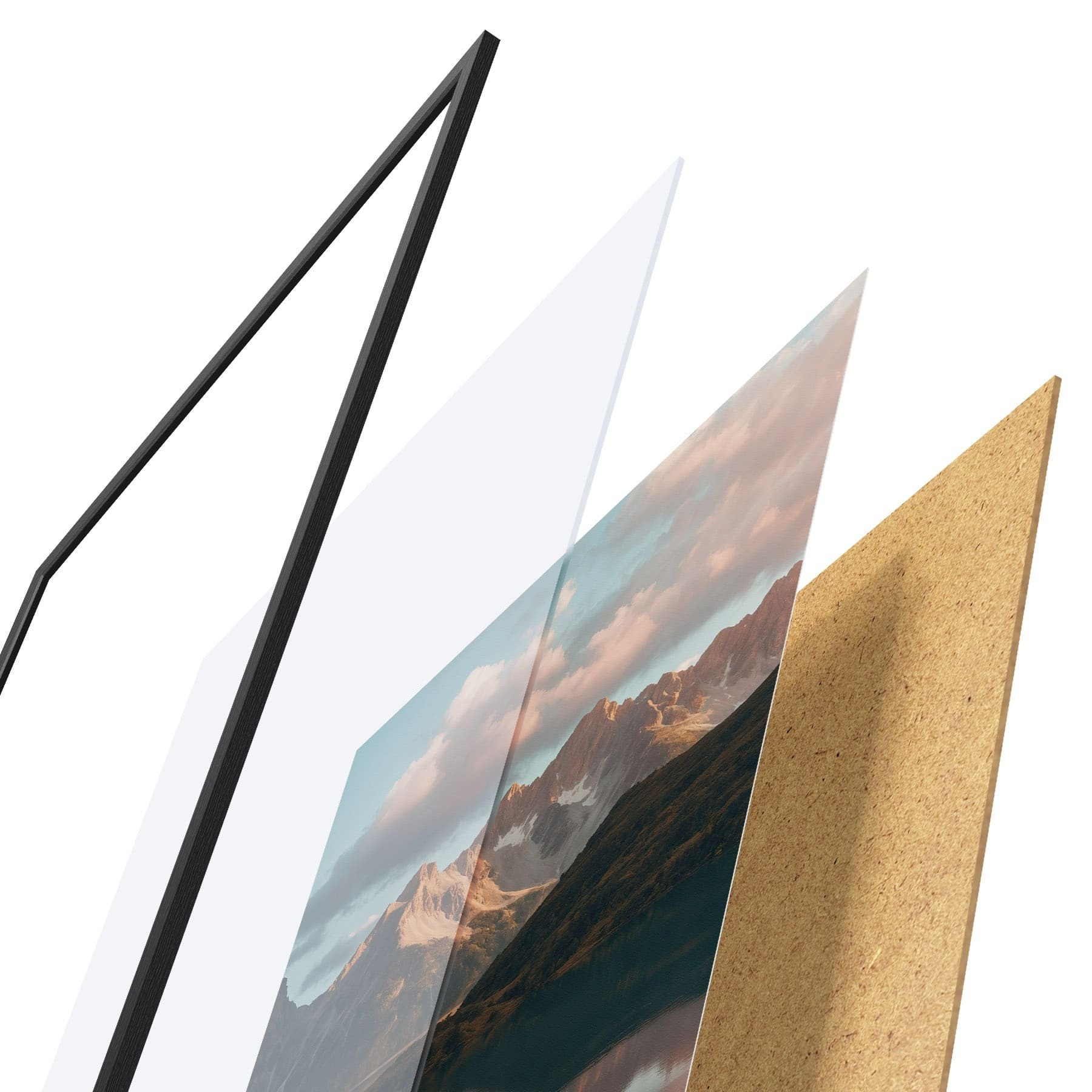 L’affiche encadrée est composée d’un cadre, d’un plexiglas, d’une image imprimée et d’un support en aggloméré. Elle est prête à être accrochée au mur grâce aux fixations situées à l’arrière.