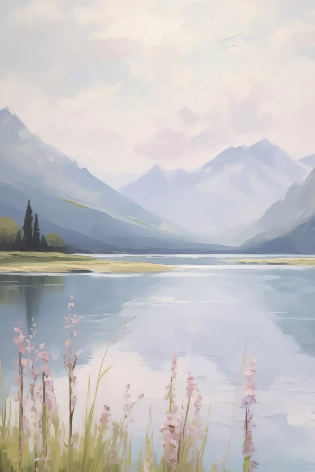 Poster Lac près des montagnes imitation de peinture Nr f48503