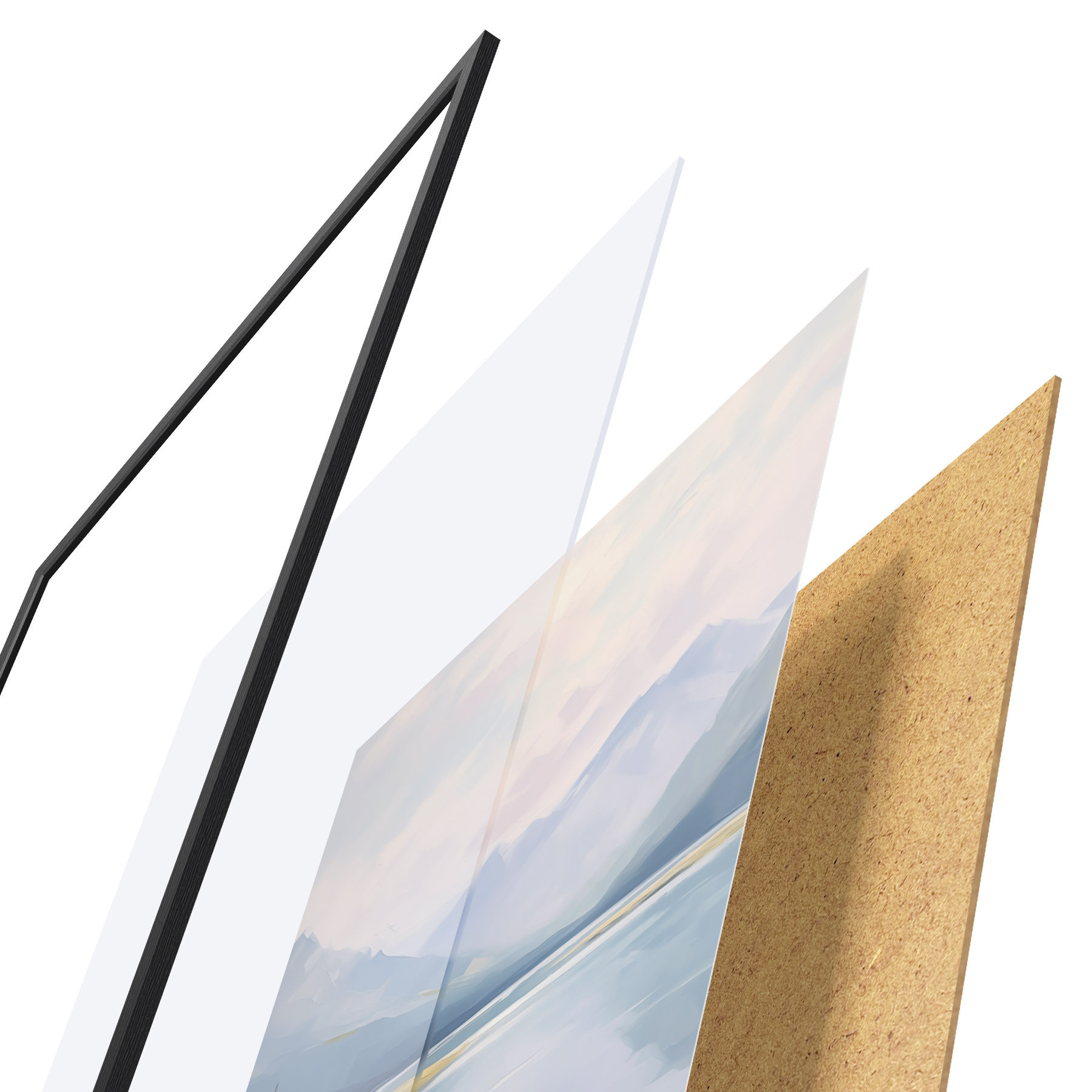 L’affiche encadrée est composée d’un cadre, d’un plexiglas, d’une image imprimée et d’un support en aggloméré. Elle est prête à être accrochée au mur grâce aux fixations situées à l’arrière.