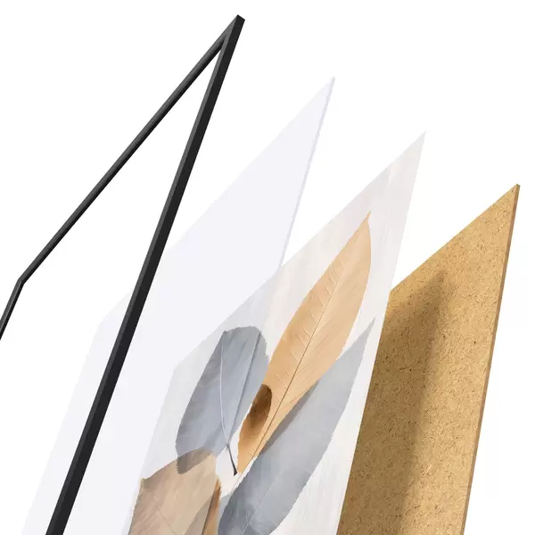 L’affiche encadrée est composée d’un cadre, d’un plexiglas, d’une image imprimée et d’un support en aggloméré. Elle est prête à être accrochée au mur grâce aux fixations situées à l’arrière.